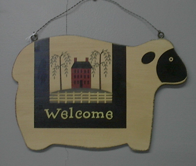 PRIMITIVE WELCOME SHEEP WOOD WALLHANG