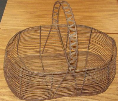 Title (ebay affiliate link): Vintage wire farm egg or vegetable gathering basket charming woven wire