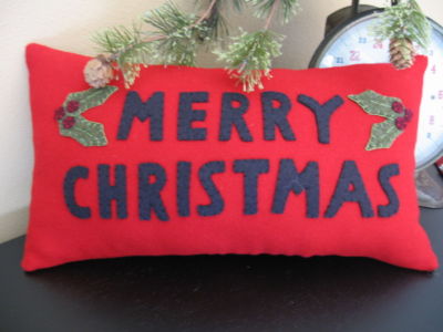 Title (ebay affiliate link): Folk Art Wool Applique MERRY CHRISTMAS pillow with Holly and Berries ~ JKB