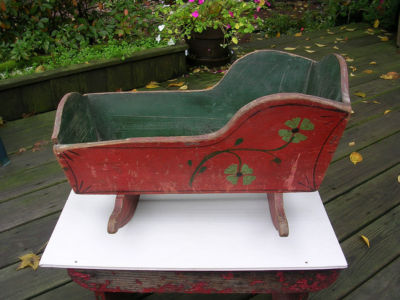 Title (ebay affiliate link): FABULOUS PRIMITIVE PAINTED FOLK ART DOLL CRADLE!!!