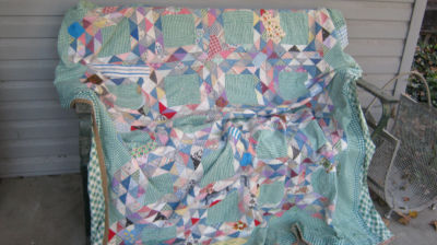 Title (ebay affiliate link): Primitive Quilt Vintage Fabric Awesome Handmade patchwork hand tied original