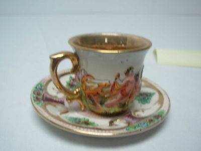 VINTAGE CAPODIMONTE TEACUP & SAUCER WITH CHERUBS
