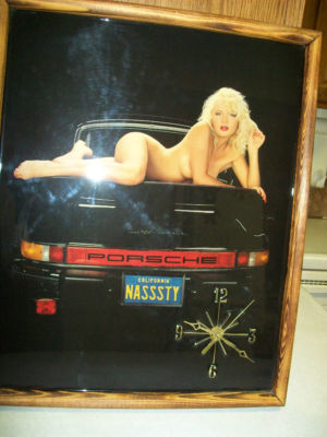 Title (ebay affiliate link): California Porsche Picture Clock Naked Blonde Model 36-24-34 Frame is 21" by 17"