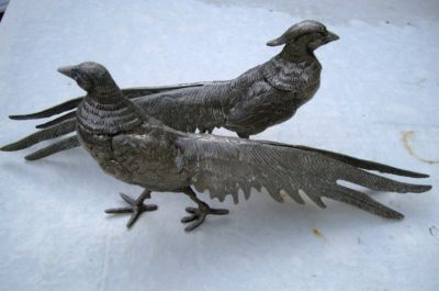 Vintage ANTIQUE PAIR OF PHEASANTS/ BIRDS~ CAST METAL FIGURES Italy