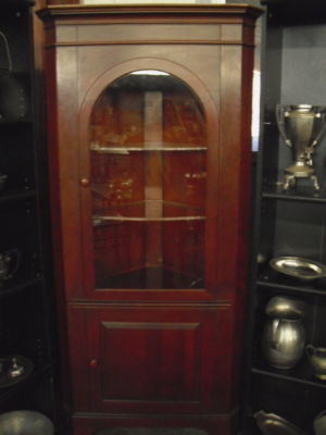 Vintage Dark Wood Corner Hutch Cabinet