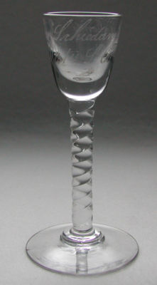 Early? Blown Dutch Wine Glass With Twisted Glass Stem And Engraving NR