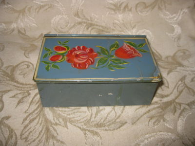 VINTAGE TOLEWARE HAND PAINTED TIN HINGED BOX ROSES