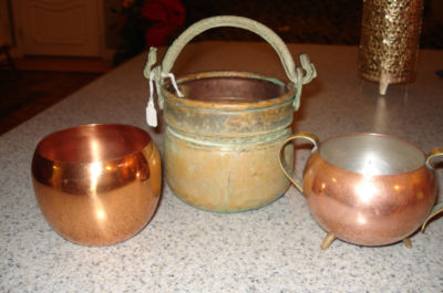 Title (ebay affiliate link): Assorted 3 COPPER POTS, Miniature Cup, Miniature 3 legged Pot , Medium Bucket