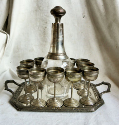 Title (ebay affiliate link): Quality Antique French Hand Blown Etched Glass & Silverplated Liqueur Set