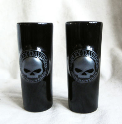 Title (ebay affiliate link): Pair of Collectors Harley Davidson Ceramic Shot Glasses 2008 Skull Design