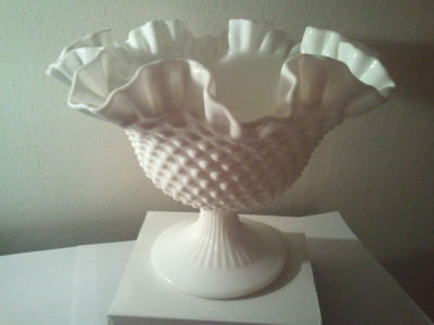 Title (ebay affiliate link): ***FENTON LARGE MILK GLASS HOBNAIL DOUBLE CRIMPED FOOTED BOWL***