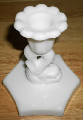 Title (ebay affiliate link): Westmoreland Milk Glass Candle Holders Set of 2 Serpant Fish Dolphin Pre 1942