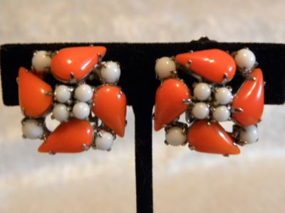VINTAGE CORAL & WHITE MILKGLASS EARRINGS