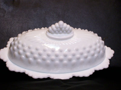 Title (ebay affiliate link): Vintage Fenton Milk White Opaque Hobnail Glass Marked Oval Butter Dish & Lid