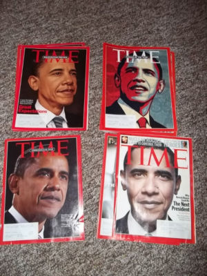 Title (ebay affiliate link): 9 Barack Obama Time Magazine covers, 2006-2009, POY, Hillary, Inaug Specials