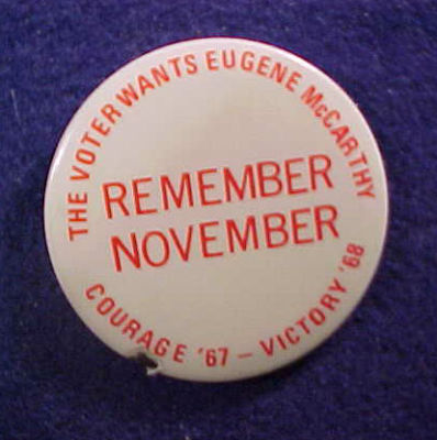 Anti Vietnam War EUGENE GENE McCARTHY BUTTON pin pinback 1968 HOPEFUL CAMPAIGN
