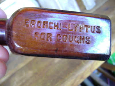 LOT 3 Antique Glass Rare Brown Medicine Bronchi - Lyptus Plus Other bottles