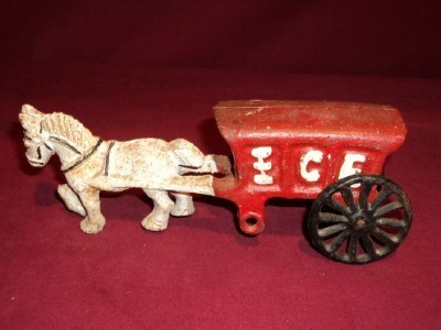 Vintage Cast Iron Horse Drawn Ice Wagon Toy