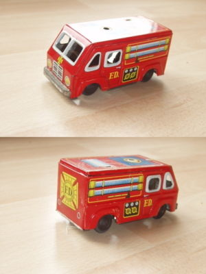 Japanese Moto Tin Plate Fire Dept Van c1950s