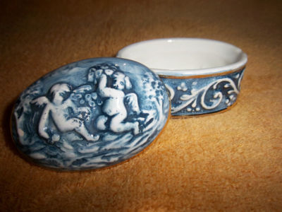 Title (ebay affiliate link): R. Capodimonte Vintage Italian Embossed Blue & White Cherub Trinket Box M.A.S.