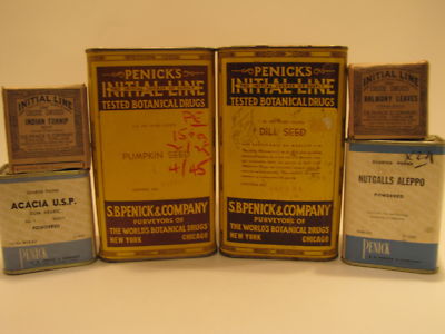 LOT OF 6 ANTIQUE PENICK PHARMACY DRUG CONTAINERS