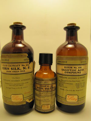 Title (ebay affiliate link): 3 ELI LILLY LABELED PHARMACY BOTTLES - CORN SILK - ROSE SOLUBLE - SALICYLIC ACID