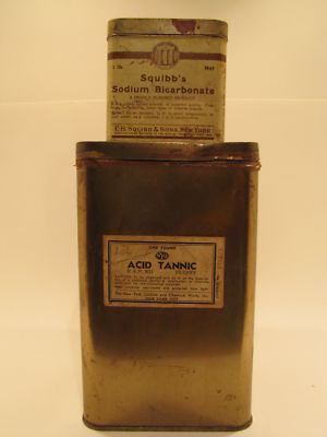 Title (ebay affiliate link): 2 ANTIQUE PHARMACY TINS AND BILLHEAD - SQUIBB AND NEW YORK QUININE INC
