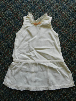 Title (ebay affiliate link): Lovely Antique Cotton Drop Waist DOLL CHEMISE Underslip Pleats Netted LACE