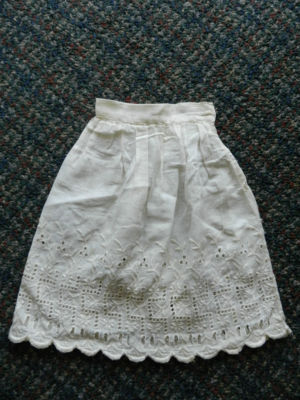 Title (ebay affiliate link): Lovely Antique White Cotton DOLL PETTICOAT Half Slip Amazing CUTWORK