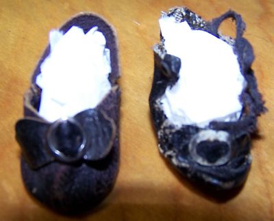 TWO SINGLE SMALL AUTHENTIC ANTIQUE DOLL SHOES