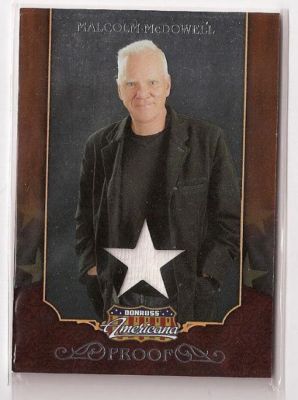 Title (ebay affiliate link): Malcolm McDowell 09 Americana Materials Proof' #d 34 of 100