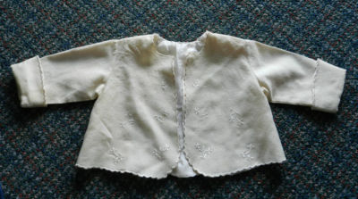 Title (ebay affiliate link): Lovely Antique FANCY Ecru Wool Challis DOLL COAT Jacket SILK Lining Embroidery