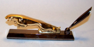 Title (ebay affiliate link): BRONZE JAGUAR HOOD ORNAMENT EMBLEM FIGURINE ADVERTISING PAPERWEIGHT / PEN HOLDER
