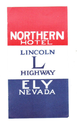 Lincoln Highway Ely Nevada Northern Hotel gummed luggage sticker