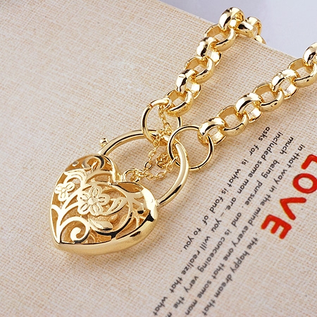 Title (ebay affiliate link): 9K Solid Gold Filled Heart Padlock Neckalce Chain 53cm (21")