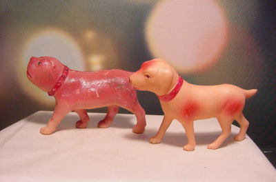 Pair of Old Japan Dogs early plastic Bulldog Stud Collar Very good celluloid