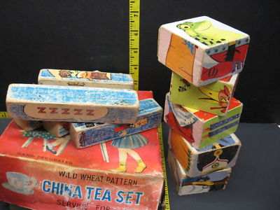 Title (ebay affiliate link): A Set of 4 Childs Tea Set Porcelain, Wooden Vintage Block Puzzles, Dagwood