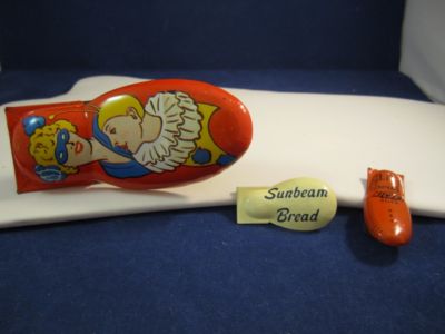 3 VINTAGE CLICKERS USA CHEVROLET SUNBREAM BREAD NEAT TIN NOISEMAKERS