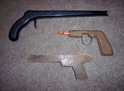 Title (ebay affiliate link): Vintage Wooden Toy Rubber Band Gun Folk Art Old Wood Toy Crayon Shooter