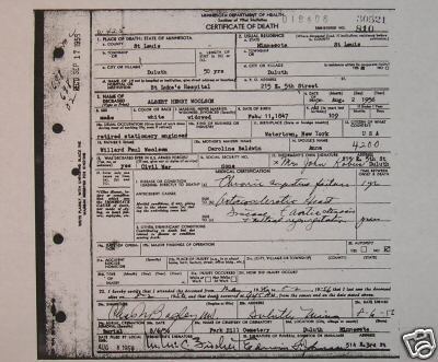 Last Union Survivor DEATH CERTIFICATE,Albert Woolson Civil War Drummer, Age 109