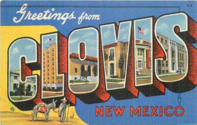 Title (ebay affiliate link): Clovis New Mexico~Large Letter Linen Postcard~Hospital~High School~Hotel~Burro