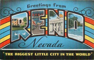 Title (ebay affiliate link): Reno Nevada~Large Letter Linen Postcard~Art Deco Rainbow~Virginia Street~Truckee