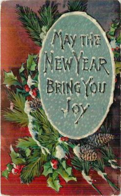 Title (ebay affiliate link): New Year~Bright Bold Deep Red~Green Pine~Holly Berries~Snow Covered~Embossed~'11
