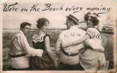 Title (ebay affiliate link): "On the Beach Every Morning"~Vintage Bathing Couples~1907 Real Photo Postcard