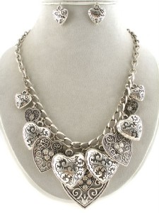 Title (ebay affiliate link): CHUNKY ANTIQUE SILVER TONE METAL HEARTS NECKLACE SET