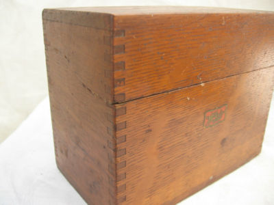 vtg Oak wood box dovetailed Monroe Michigan MI Weis recipt recipe wooden