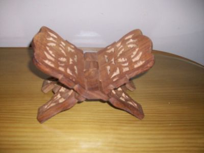 VINTAGE WOODEN CARVED FOLDING BOOK HOLDER