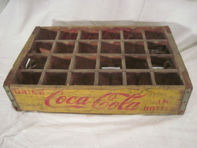 Title (ebay affiliate link): OLD WOOD-WOODEN COKE BEVERAGE POP SODA CRATE ADVERTISING BOTTLE CARRIER YELLOW
