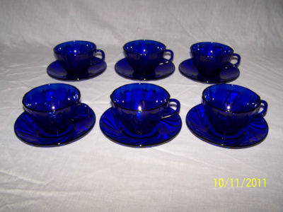 Title (ebay affiliate link): "VINTAGE" 6 BEAUTIFUL "COBALT BLUE" GLASS CUP & SAUCERS w/RAISED SWIRL DESIGN