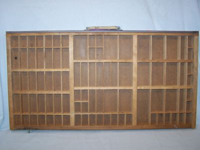 * ANTIQUE 89-SECTION WOODEN PRINTERS TRAY SHADOW BOX